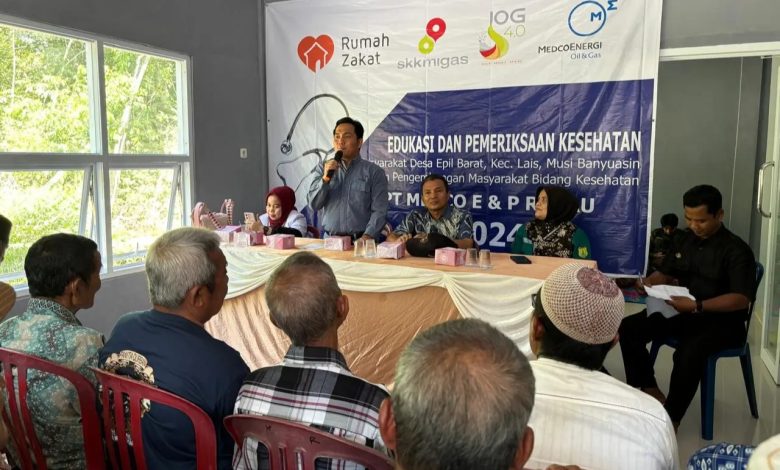 MUBA, The8news.com – Sebagai implementasi Program Pengembangan Masyarakat Bidang Kesehatan, Medco E & P Rimau (Medco E&P) menggelar edukasi dan pemeriksaan kesehatan masyarakat di Desa Epil Barat, Kecamatan Lais, Kabupaten Musi Banyuasin. Bekerja sama dengan Puskesmas Lais, Pemerintahan Desa Epil Barat dan melalui Rumah Zakat, kegiatan dilaksanakan di Kantor Desa Epil Barat yang berada di Dusun Muara Padang pada Jum’at (18/10/24).