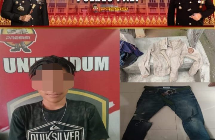 Dalam penangkapan tersebut, polisi mengamankan beberapa barang bukti, termasuk 1 helai celana jeans warna biru merek Bomb Boogie,1 jaket warna coklat muda,dan 1 pasang sandal gunung warna hitam merek Eiger.