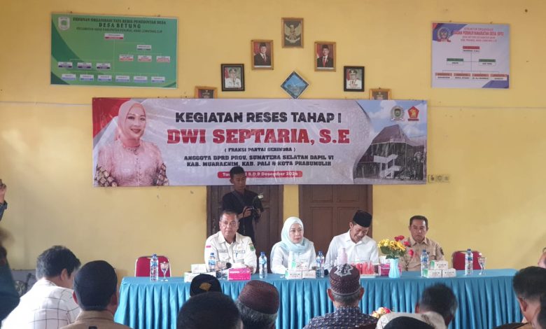 Reses yang dimulai pukul 10.00 WIB tersebut berlangsung di Kantor Kepala Desa Betung Induk. Anggota DPRD Provinsi Sumsel, Dwi Septaria, S.E., memimpin jalannya acara yang dihadiri sejumlah tokoh penting, termasuk calon Bupati terpilih Asgianto, S.T., Camat Abab Razulik, S.H., Kepala Desa Betung Induk Suparman, S.E., perangkat desa, tokoh adat, tokoh agama, tokoh masyarakat, dan insan pers.