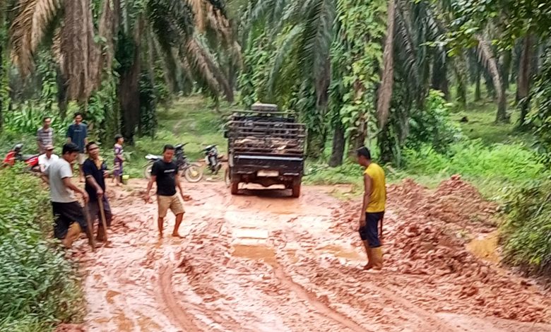 Lanjutnya, jalan penghubung antara Desa ini merupakan, satu satunya akses jalan alternatif keluar masuk warga melintas untuk menuju ke Sekolah dan membawa hasil panen menuju timbangan ram sawit.
