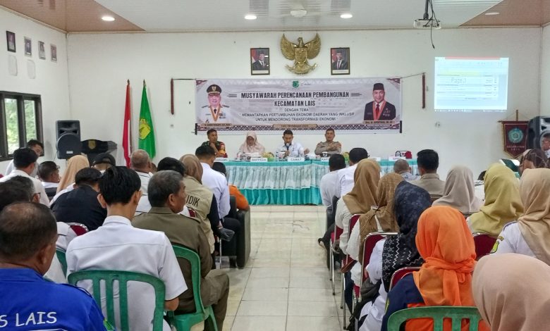MUBA, The8news.com – Pemerintah Kecamatan Lais Kabupaten Musi Banyuasin (Muba) melaksanakan Musyawarah Perencanaan Pembangunan tingkat kecamatan (Musrenbangcam) untuk program kegiatan tahun 2026, bertempat di aula kantor Kecamatan Lais, Rabu (19/02/25).