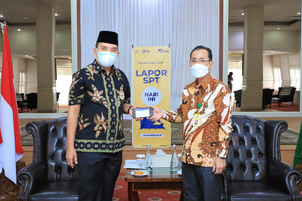MUBA,the8news.com | Plt Bupati Musi Banyuasin Beni Hernedi SIP mengajak masyarakat yang telah memiliki NPWP untuk melaporkan SPT Tahunan lewat e-Filing. Hal tersebut disampaikan Plt Bupati Beni saat menerima audiensi jajaran Kantor Pelayanan Pajak (KPP) Pratama Sekayu di Guest House Griya Bumi Serasan Sekate, Kamis (17/2/2022).