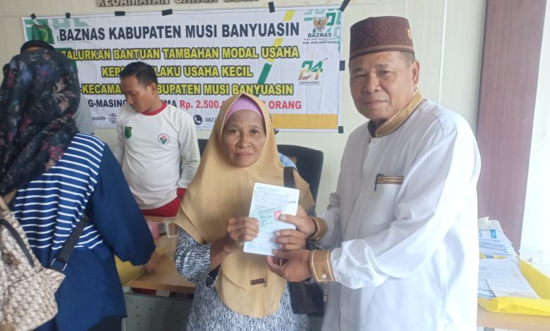 MUBA, The8news.com – Badan Amil Zakat Nasional Kabupaten Musi Banyuasin (BAZNAS Muba). Melakukan penyaluran bantuan tambahan modal usaha bagi para pedagang kecil yang masih tergolong Mustahik (Miskin) di Kabupaten Muba.