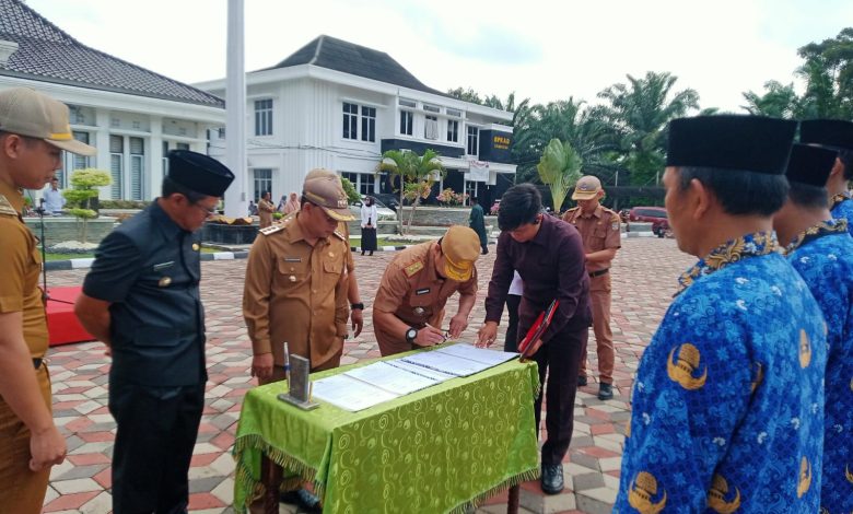 Pelantikan digelar dihalaman depan kantor Bupati Muratara dihadiri oleh wakil Bupati Muratara H Innayatullah,Sekda Muratara Elvandary Kepala BKPSDM Lukman dan para OPD lainnya, Senin (20/5/2024).