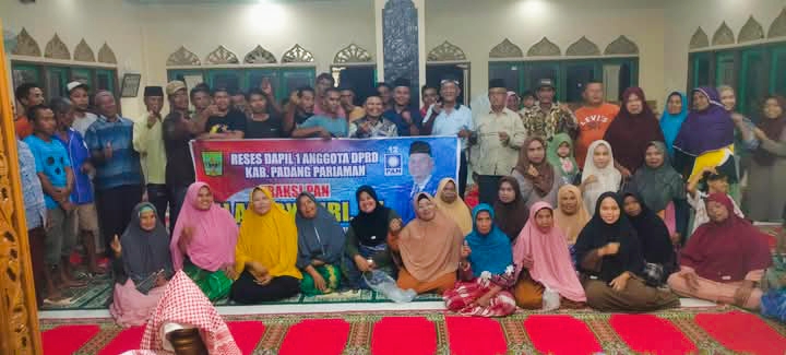 PADANG PAARIAMAN–Anggota DPRD Kabupaten Padang Pariaman dari Fraksi Partai Amanat Nasional (PAN) Dapil 1, Alam Syahri, melaksanakan kegiatan Reses di Masjid Al-Ikhlas, Korong Hilalang Gadang, Nagari Parit Malintang, Kecamatan Enam Lingkung, pada Selasa malam (20/5/2025).