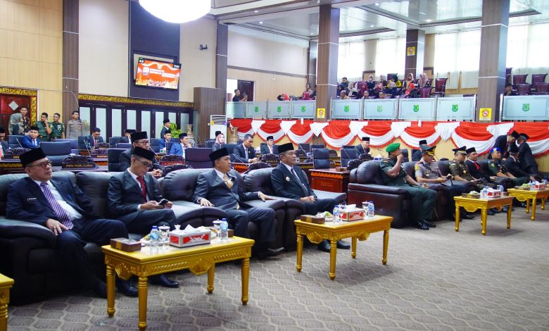 Hadir Ketua DPRD Afitni Junaidi Gumay SE., didampingi para Wakil Ketua DPRD Muba, para anggota DPRD, Forkopimda, asisten, staf ahli, dan kepala OPD.