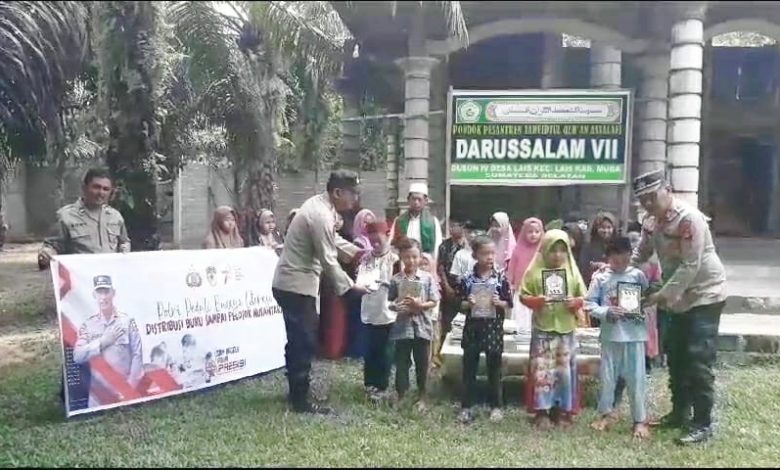 Peduli Santri, Kapolsek Lais Polres Muba Salurkan 159 Al Quran dan Buku Bacaan