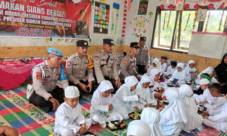 MUBA, The8news.com – Guna mendukung Program Presiden Republik Indonesia (RI) Prabowo Subianto terkait makan pagi bergizi. Kapolres Musi Banyuasin (Muba) AKBP Listiyono Dwi Nugroho melalui Kapolsek Lais Muhammad Ridho Pradani SPd SH membagikan makan bergizi gratis kepada anak anak TK Raudhatul Athfala, di Desa Lais, Kecamatan Lais, Kabupaten Musi Banyuasin (Muba).