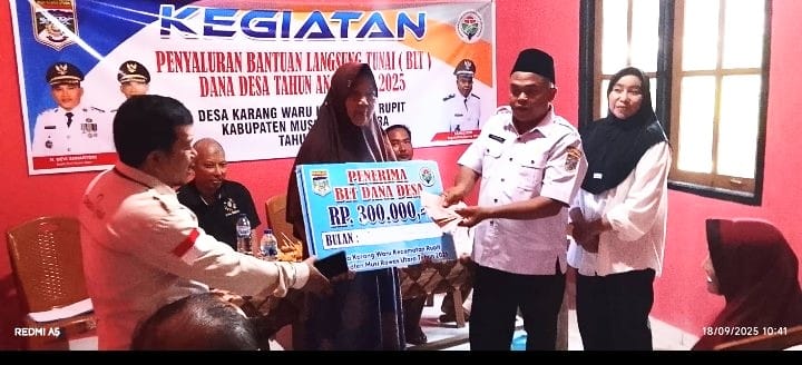 MURATARA, The8news.com – Sebanyak 21 warga Dusun 2, Desa Karang Waru, Kecamatan Rupit, Kabupaten Musi Rawas Utara (Muratara), Provinsi Sumatera Selatan, mengaku bersyukur atas pencairan Bantuan Langsung Tunai (BLT) Dana Desa (DD) Tahun Anggaran 2025.