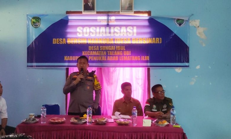 PALI , The8news.com – Sebagai upaya mendukung terbentuknya lingkungan masyarakat yang bebas dari bahaya narkoba, Polsek Talang Ubi Gencar Sosialisasi program Desa Bersih Narkoba (Bersinar) di Desa Sungai Ibul, Kecamatan Talang Ubi, Kabupaten PALI.