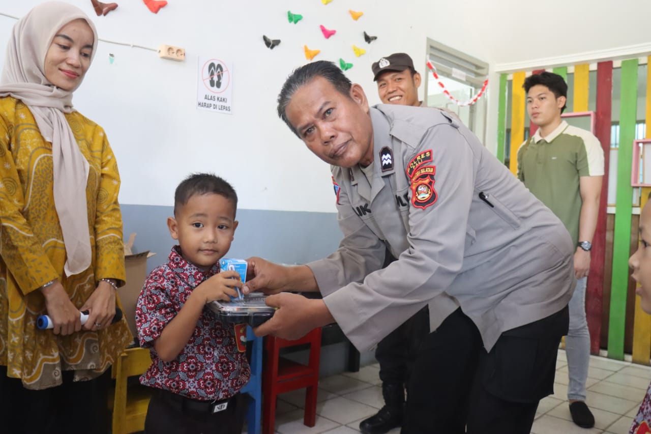 PALI, The8news.com – Dalam upaya mendukung tumbuh kembang anak-anak usia dini, Polres PALI melalui Sat Binmas dan Sat Reskrim melaksanakan kegiatan sosial berupa pemberian makanan siang bergizi kepada siswa TK Kemala Bhayangkari, pada Jum’at, (13/12/2024).