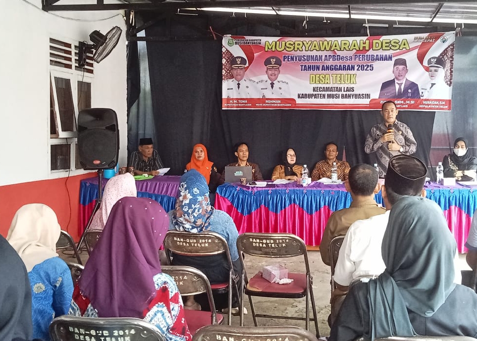 MUBA, The8news.com | Pemerintah Desa Teluk melaksanakan musyawarah Desa Perubahan Anggaran Pendapatan dan Belanja Desa (APBDes) Tahun Anggaran 2025, dan rancangan anggaran tahun 2026, di Kantor Desa Teluk kecamatan Lais Kabupaten Musi Banyuasin, Jumat (24/10/2025).