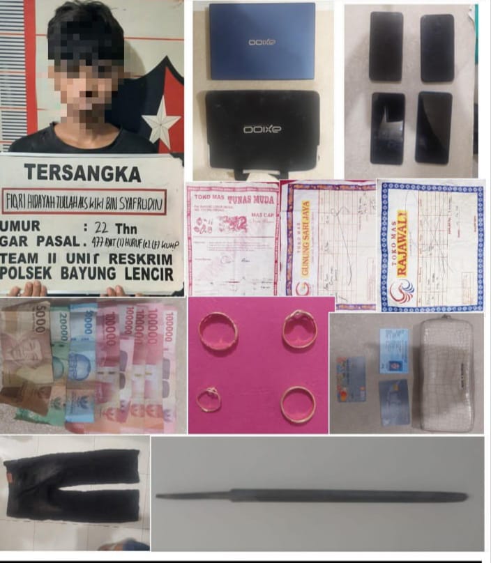 Dari hasil pemeriksaan awal, pelaku mengakui perbuatannya. Polisi juga berhasil mengamankan sejumlah barang bukti hasil kejahatan, termasuk handphone, perhiasan emas, uang tunai, serta alat yang digunakan pelaku.