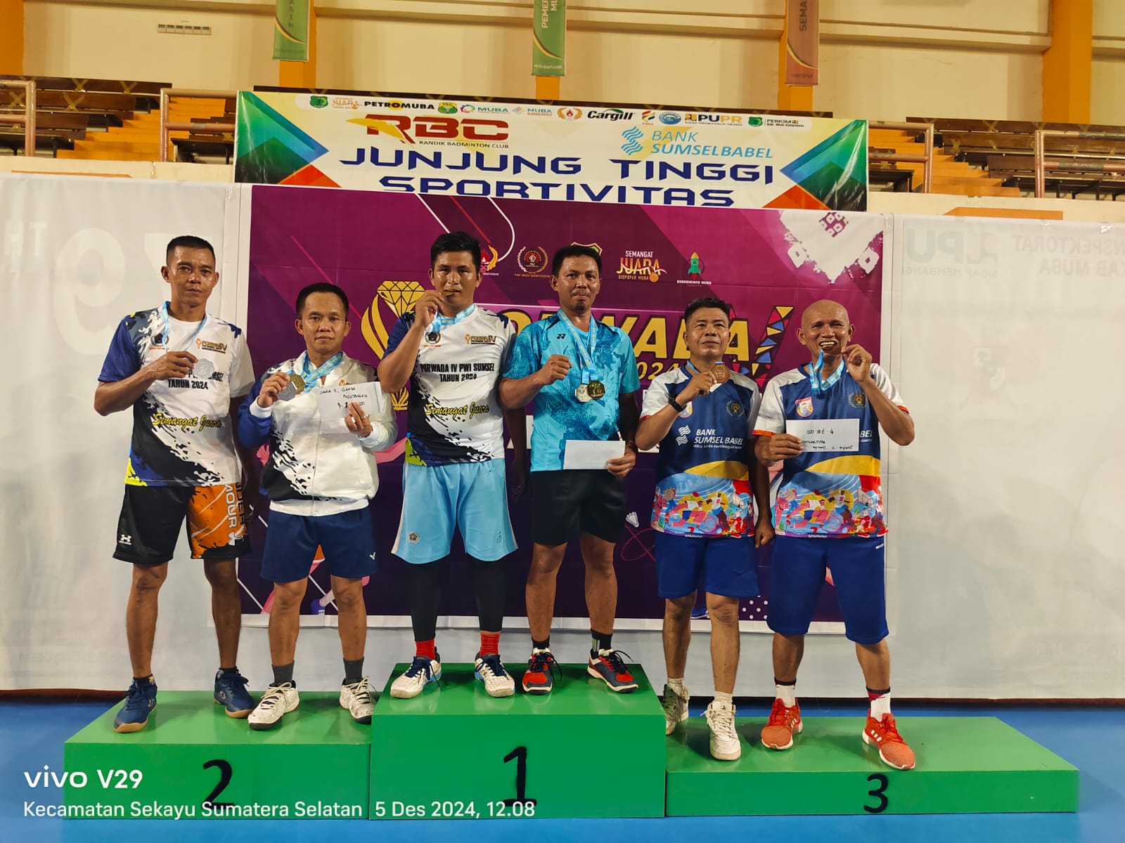 Muba, The8news.com – Setelah Cabang olahraga catur PWI Muba borong medali emas pada Pekan Olahraga Wartawan Daerah ( Porwada ) IV Persatuan Wartawan Indonesia ( PWI ) Sumsel di Kabupaten Musi Banyuasin , Rabu ( 4/12/2024 ) di Gedung PBG Sekayu, PWI Musi Banyuasin berhasil menambah perolehan medali emas pada cabang olahraga bulu tangkis Nomor Single dan Ganda.