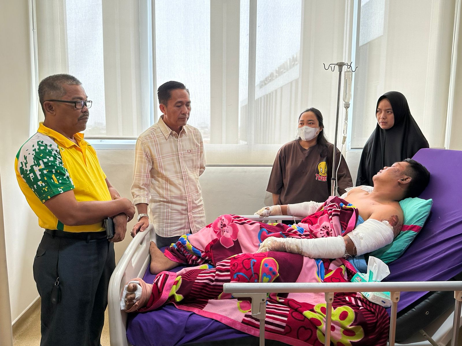 Ratu Dewa datang ke RS Pelabuhan Boom Baru Palembang untuk menjenguk korban yang mengalami luka bakar atas insiden tersebut.