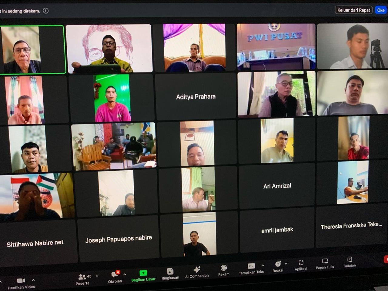 Sebanyak 60 peserta berasal dari Provinsi Papua Tengah dan Riau yang bakal mengikuti ujian kompetensi wartawan (UKW) fasilitas PWI Pusat di dua daerah tersebut begitu antusias mengikuti pelatihan jurnalistik atau pra-UKW yang digelar melalui Zoom meeting, Senin (15/4).