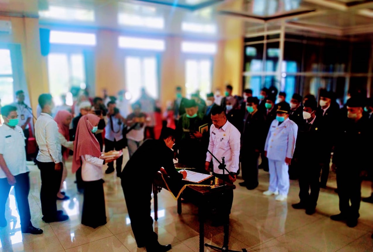 Dari 38 pejabat Aparatur Sipil Negara(ASN) yang di lantik hari ini, dengan menduduki Jabatan, 2 orang jabatan tinggi Pratama,26 orang pejabat Administator, 3 orang pengawas dan 7 orang jabatan fungsional.