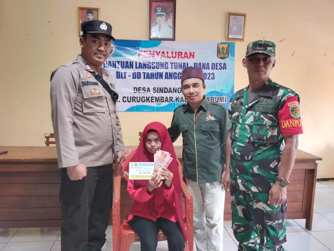 Curugkembar ,The8news.com | Bhabinkamtibmas Desa Sindangraja Bripka. Darmawan melakukan monitoring penyaluran Bantuan Langsung Tunai (BLT) sumber Dana Desa (DD) di Desa Sindangraja Kecamatan Curugkembar Kabupaten Sukabumi.
