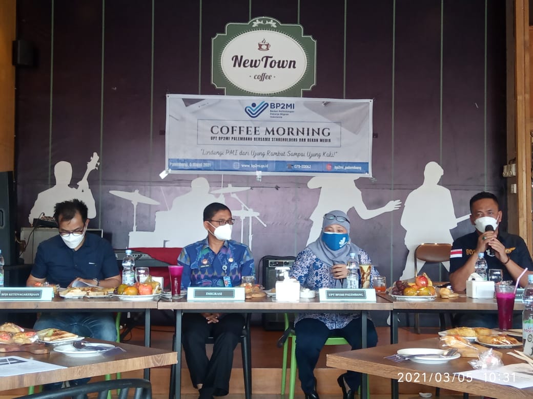 Palembang, The8news. Com- Unit Pelaksana Teknis (UPT) Badan Pelindungan Hukum Pekerja Migran Indonesia (BP2MI) Palembang bersama stakeholders dan rekan media menggelar coffee morning bertema Pelindung Pekerja Migran Indonesia, Jumat (5/3) di New Town Kopitiam Bukit Golf Palembang.