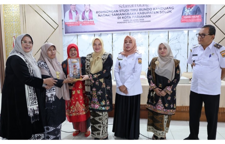Kedatangan rombongan Bundo Kanduang Kabupaten Solok tersebut disambut Walikota Pariaman yang diwakilkan kepada Asisten II Setdako Pariaman, Hj. Nazifah bersama Wakil Pembina Bundo Kanduang Kota Pariaman, Ny. Dina Mulyadi, Ketua Dharmawanita Ny. Nelvi Afrizal dan jajaran Bundo Kanduang Kota Pariaman di Balairung Kota Pariaman, Rabu (22/4/2026).
