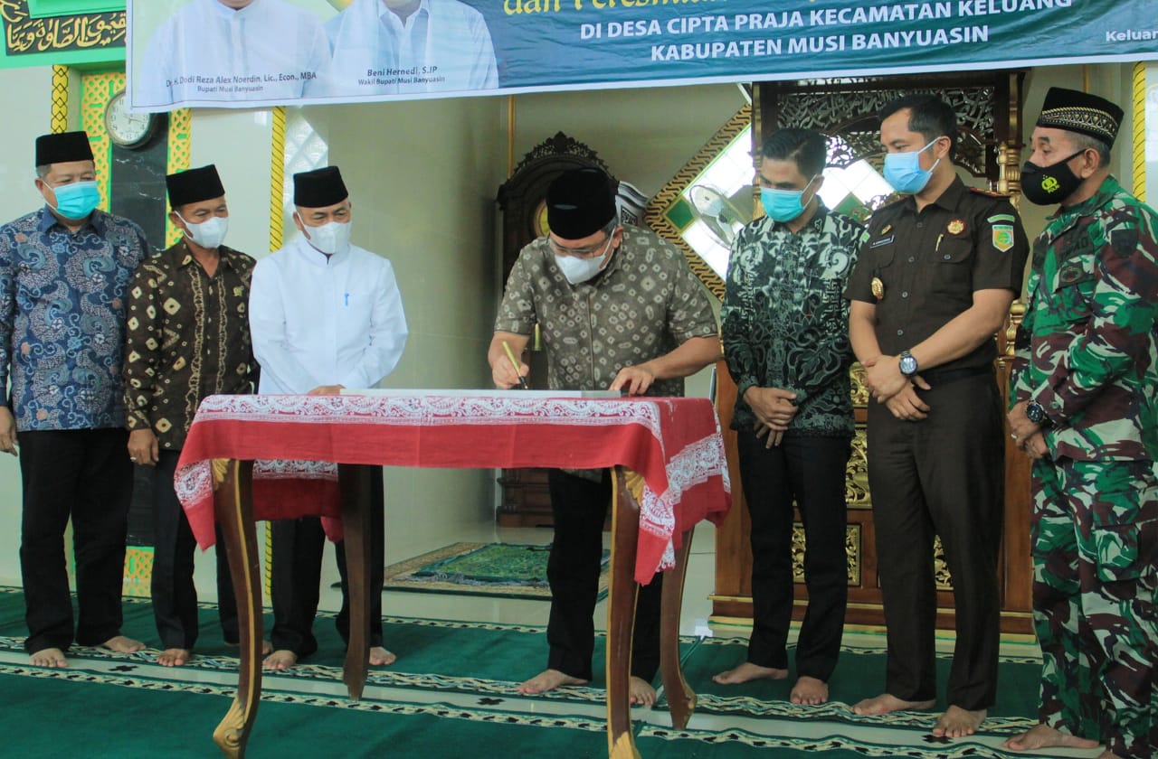 Muba, The8news.com – Usai mengunjungi pasar tradisional Desa Karya Maju Kecamatan Keluang, Bupati Musi Banyuasin (Muba) Dr H Dodi Reza Alex Noerdin melakukan safari jum’at sekaligus meresmikan masjid Jami’ Cipta Praja di Desa Cipta Praja Kecamatan Keluang, Jumat (12/3).