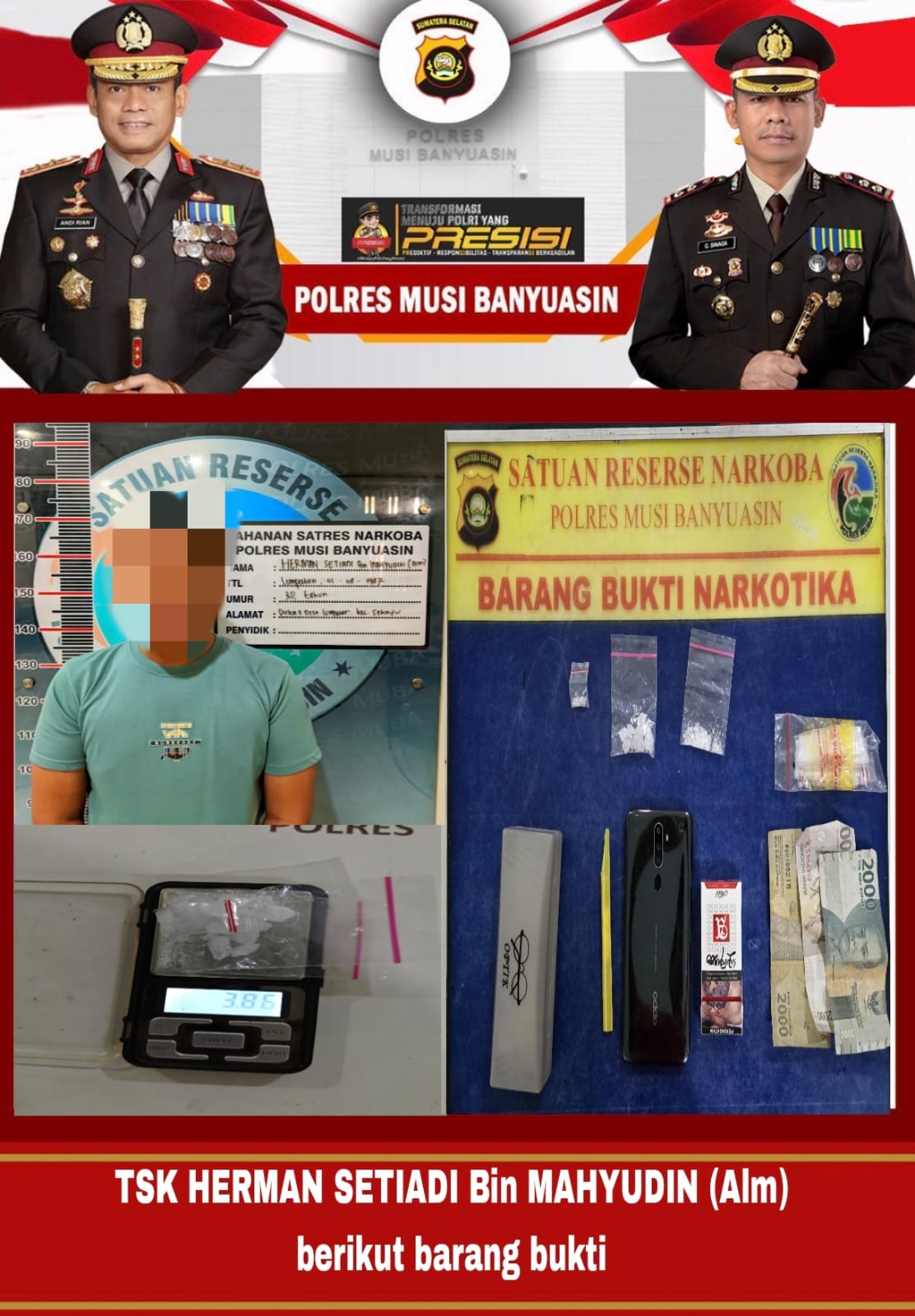 Dari penjelasan kasat, bahwa personilnya pada Kamis, (15/05/25) sekira pukul 10.40 Wib penangkapan terhadap HS didesa Lumpatan Kec. Sekayu tepatnya dirumah pelaku dan saat penggeledahan ditemukan 3 (tiga) plastik klip bening berisikan yang diduga narkotika jenis sabu dengan berat bruto 3,86 ( tiga koma delapan enam ) gram.