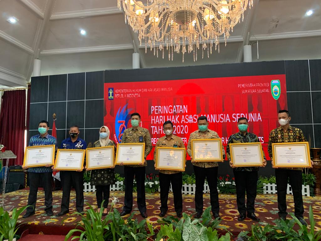 Memperingati Hari HAM Sedunia, Kepala Lembaga Pemasyarakatan Kelas IIB Muara Enim Herdianto, Amd.IP, SH, M.Si terima penghargaan Layanan Berbasis HAM dari Menkumham RI secara Virtual yang diserahkan langsung melalui Gubernur Sumatera Selatan, Herman Deru Senin (14/12) di Istana Gubernur Griya Agung Palembang, Provinsi Sumatera Selatan.
