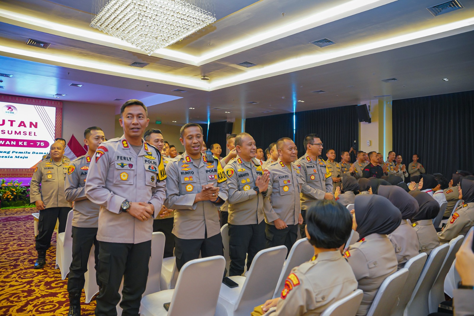 Nampak hadir langsung, Kapolda Sumsel, Irjen Pol. A. Rachmad Wibowo, S.I.K dan Wakapolda, Brigjen. Pol. M. Zulkarnain, S.I.K, para PJU Polda Sumsel, Kapolres Muratara AKBP Koko Arianto Wardani, SIK, MH, juga Kapolres se Polda Sumsel.