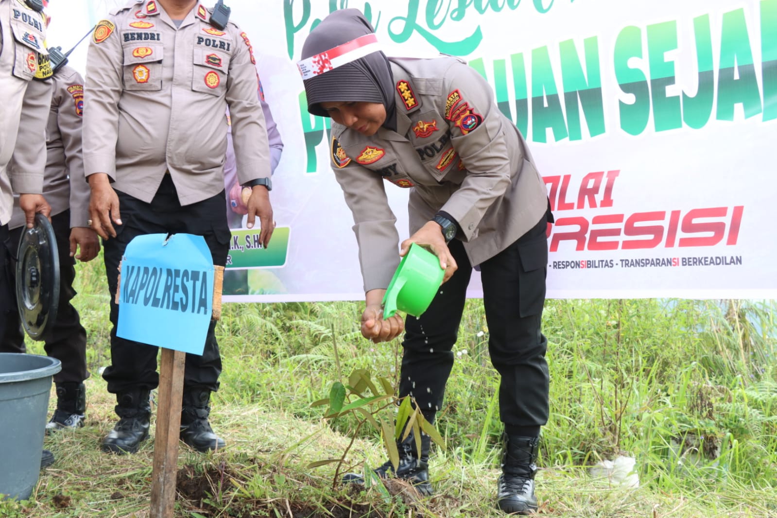 Bukittinggi The8news.com. Kapolresta Bukittinggi Kombes Pol Yessi Kurniati SIK. MM , pimpin penanaman bibit pohon yang dilaksanakan Polri, guna melestarikan negeri penghijauan sajak dini.