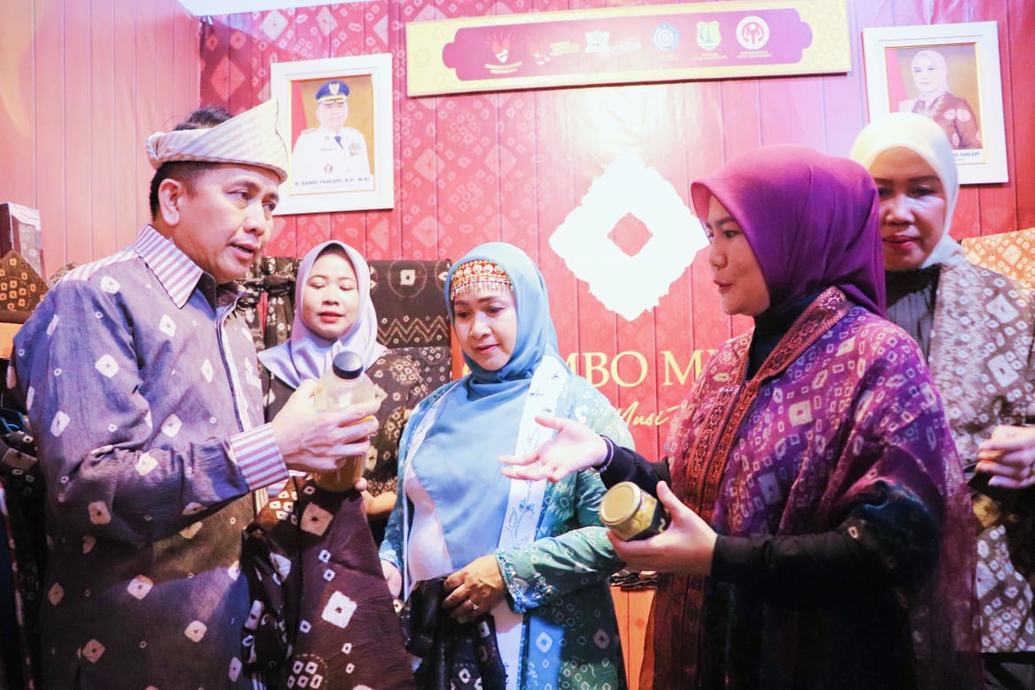 Kunjungan Pj Gubernur yang didampingi oleh Ketua Dekranasda Provinsi Sumsel Hj Tyas Fatoni ini disambut oleh Ketua Dekranasda Muba Hj Triana Minarni Sandi Fahlepi bersama Kepala Dinas Perdagangan dan Perindustrian Muba Azizah SSos MSi.