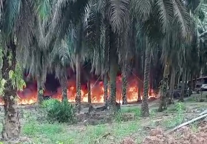 MUBA, The8news.com – Peristiwa kebakaran Kembali Terjadi di sebuah lokasi tempat jual beli minyak peras/lopon minyak ilegal yang berada di Desa Tanjung Dalam, Kecamatan Keluang, Kabupaten Musi Banyuasin (Muba), Selasa, (15/07/25) Siang Sekitar pukul 13.00 WIB.
