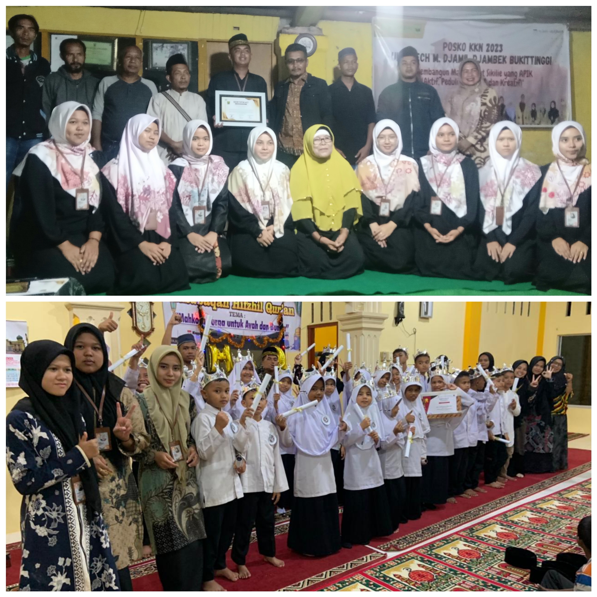 Setelah berjalannya program tahfizh selama 3 minggu, kami melaksanakan musabaqah hifzhil qur’an pada tanggal 16 juli 2023 yang mana pesertanya adalah seluruh santiwan/i yang mengikuti program tahfizh di dua surau tempat program ini kami laksanakan. Musbaqah hifzil quran ini kami mengangkat tema “ Mahkota Syurga Untuk ayah Dan Bunda “karena kami yakin santri yang mengikuti program tahfiz ialah santri pilihan yang akan memberikan mahkota syurga untuk kedua orang tuanya nanti. Acara ini kami angkat dengan iuran dan beberapa sponsor yang telah membantu kami untuk mengangkat acara ini. memang hadiah yang kami berikan tidak begitu mahal dari material namun sangat berarti untuk santri melnjutkan ke sekolah yang lebih tinggi nantinya. Karena salah satu dari hadiahnya sertifikat yang di bubuhi tokoh masyarakt korong sikilie dan bapak wali nagari sekalipun semua peserta kami berikan sertifikat ini. dan selain itu santri juga kami berikan mahkota, karena kami yakin santri yang mengikuti program ini akan memberikan mahkota yang sebenarnya di syurga nanti. Aamiin rabbaral “alamin