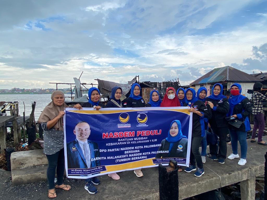 Palembang,The8news.com | Partai Nasdem DPD Kota Palembang melakukan kegiatan membantu para korban kebakaran dan langsung meninjau ke lokasi di kawasan Batu Ampar Kelurhan 1 Ilir Kecamatan Ilir Timur 2 Kota Palembang, Sabtu (23/7/2022).