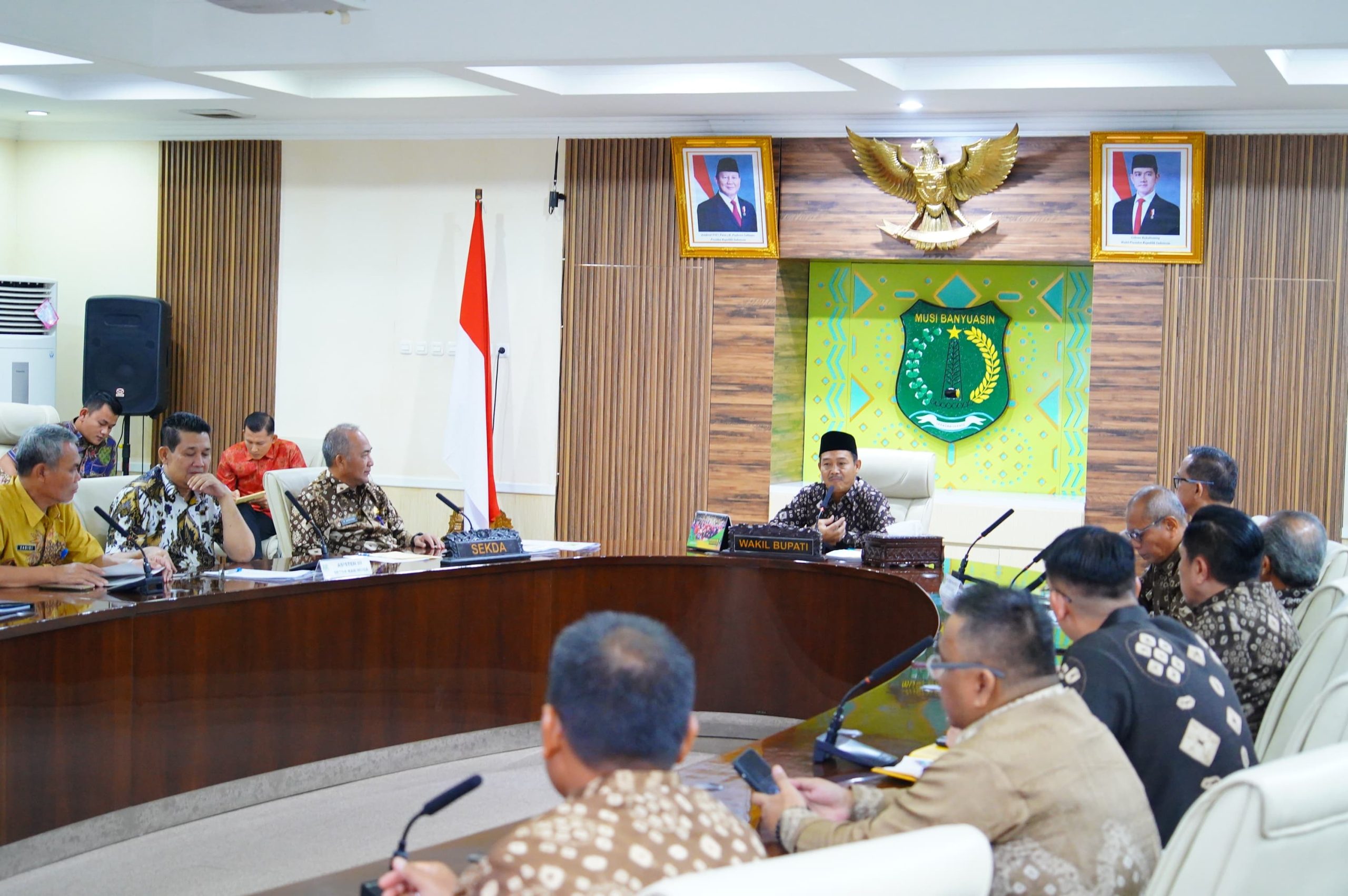 Rapat yang berlangsung di ruang rapat Serasan Sekate pada Jumat (7/3/2025), dipimpin oleh Bupati Muba H. M. Toha yang diwakili oleh Wabup Rohman. Acara ini dihadiri oleh Sekretaris Daerah Dr. H. Apriyadi Mahmud, M.Si., para asisten, staf ahli bupati, kepala Organisasi Perangkat Daerah (OPD), dan camat se-Kabupaten Muba.