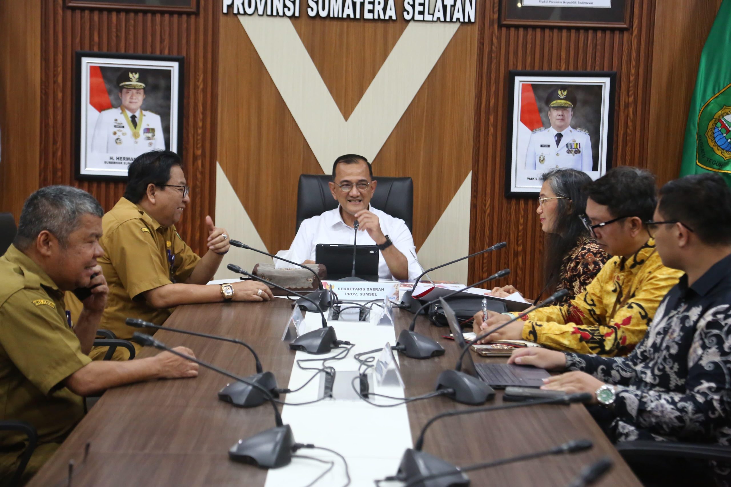 Palembang, the8news.com | Sekretaris Daerah Provinsi Sumatera Selatan (Sumsel), Drs H. Edward Candra MH, menerima audiensi dari Direktur Pengkajian Implementasi Pembinaan Ideologi Pancasila (PIP) Badan Pembinaan Ideologi Pancasila (BPIP), Irene Camelyn Sinaga, di Ruang Rapat Setda Sumsel, Selasa (14/10/2025). Pertemuan ini menjadi langkah konkret memperkuat sinergi antara pusat dan daerah dalam memperluas implementasi pendidikan Pancasila di sekolah-sekolah Sumsel.