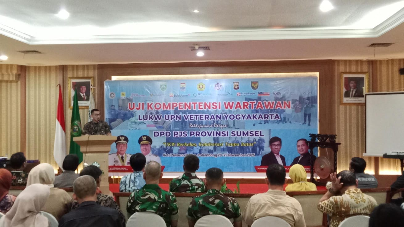 Palembang, The8news.com — Upaya memperkuat profesionalisme wartawan di Sumatera Selatan kembali ditunjukkan melalui penyelenggaraan Uji Kompetensi Wartawan (UKW) yang digelar di Hotel Swarna Dwipa Palembang, Jumat (28/11/2025). Kegiatan ini merupakan hasil kerja sama antara Lembaga Uji UKW UPN “Veteran” Yogyakarta dan Dewan Pimpinan Daerah Pro Jurnalis Media Siber (PJS) Sumatera Selatan.