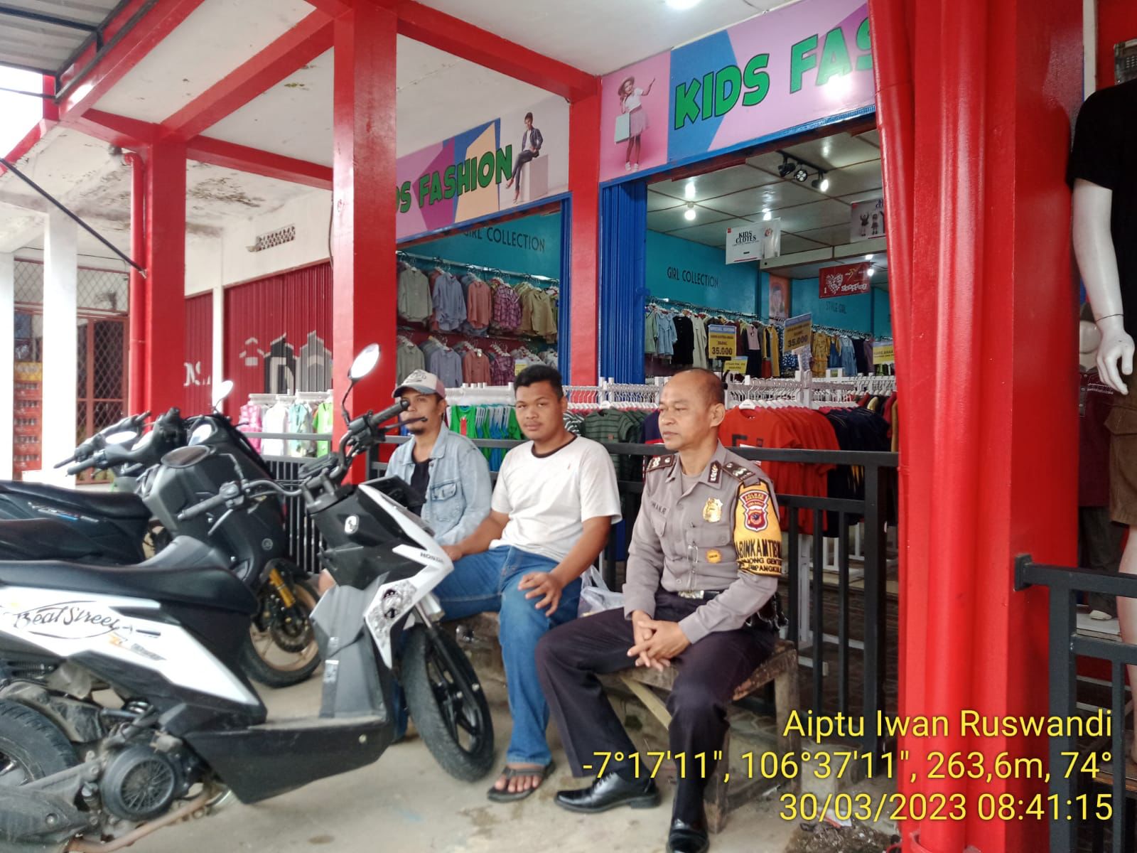 Sukabumi,The8news.com | Bhabinkamtibmas Desa Bojong genteng Polsek Jampangkulon Polres Sukabumi, Aiptu Iwan Ruswandi melakukan silaturahmi atau Door to Door Syistem ke pertokoan yang ada di wilayah Desa Bojong genteng Kecamatan Jampangkulon, Kabupaten Sukabumi pada hari Kamis, (30/3/2023) Siang.