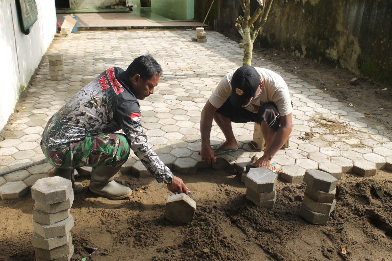 PALEMBANG – Pemasangan kaping blok Masjid Nurul Iman yang berada di Jalan Taqwa Lorong Sungai Jawi RT 26 RW 07 Kelurahan Sei Selincah Kecamatan Kalidoni Palembang juga jadi sasaran TMMD ke 110 Kodim 0418 Palembang.