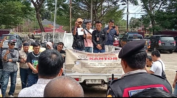 “Tujuan aksi damai kami hari ini ke gedung DPRD Muratara mengkritisi tentang penggunaan anggaran Publikasi media tahun 2024,”ujar Hanafi.