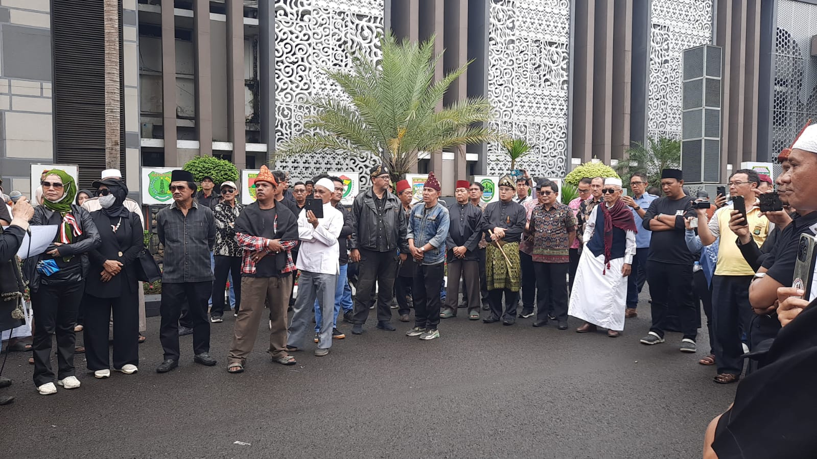Poto: Ratusan masa dari Zuriat Kesultanan Palembang Darussalam ,  Aliansi Penyelamat Benteng Kuto Besak (BKB), Aliansi Masyarakat  Penyelamat Cagar Budaya (AMPCB) , Sejarawan,  budayawan kota Palembang dan masyarakat Palembang menggelar aksi 12.12 Penyelamatan BKB  di Kantor Gubernur Sumsel, menggelar aksi demo terkait  penolakan terhadap  pembangunan gedung  baru 7 lantai Rumah Sakit (Rs) dr. Ak Gani di kawasan cagar budaya BKB, Jumat (12/12/2025).