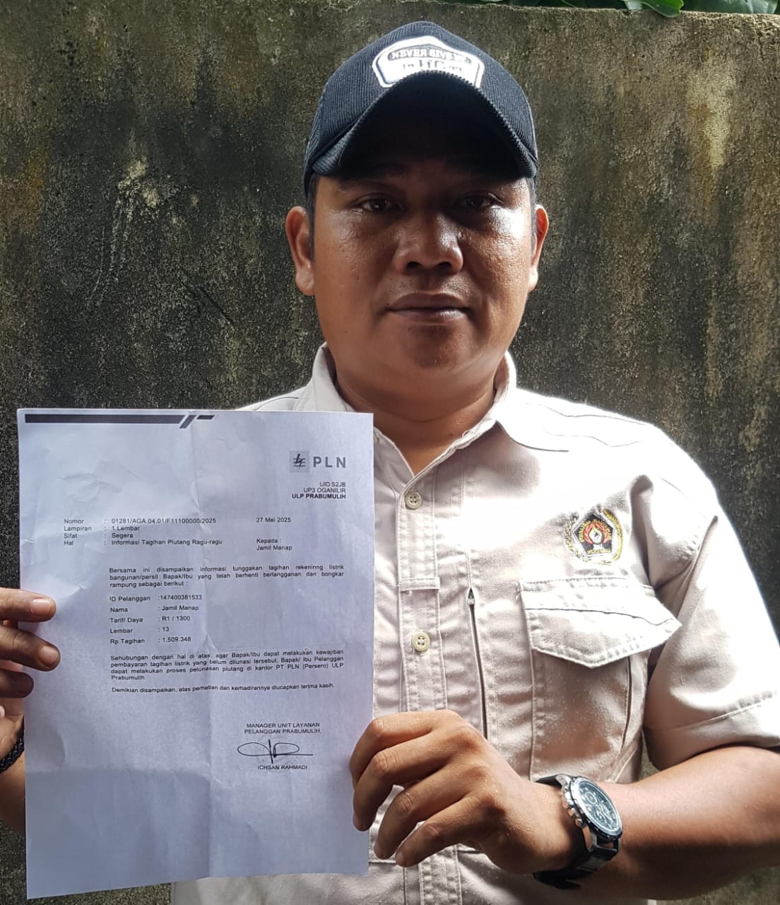 Pihak PLN kemudian menyerahkan surat resmi dengan nomor: