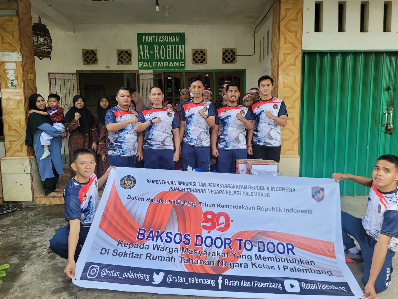 Palembang, 15 Agustus 2025 – Dalam rangka memperingati Hari Ulang Tahun ke-80 Kemerdekaan Republik Indonesia, Rutan Kelas I Palembang bersama jajaran Kantor Wilayah Direktorat Jenderal Pemasyarakatan (Ditjenpas) Sumatera Selatan melaksanakan kegiatan bakti sosial berupa pembagian sembako kepada masyarakat sekitar secara door to door dan kepada Panti Asuhan Ar Rahim.