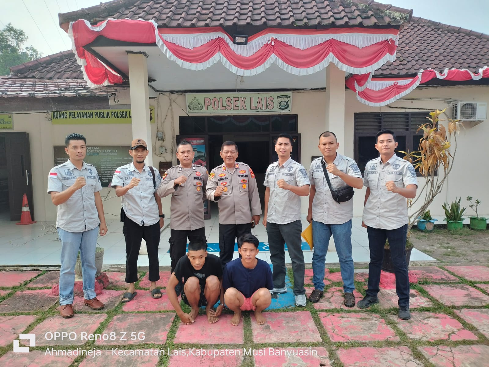 Poto Aprat kepolisian sektor Lais dan Dua tersangka yang di amankan karena di duga pelaku pengedar Narkotika jenis Shabu-shabu dan Pil extacy di wilayah Tanjung Agung kec Lais (30/08/23)