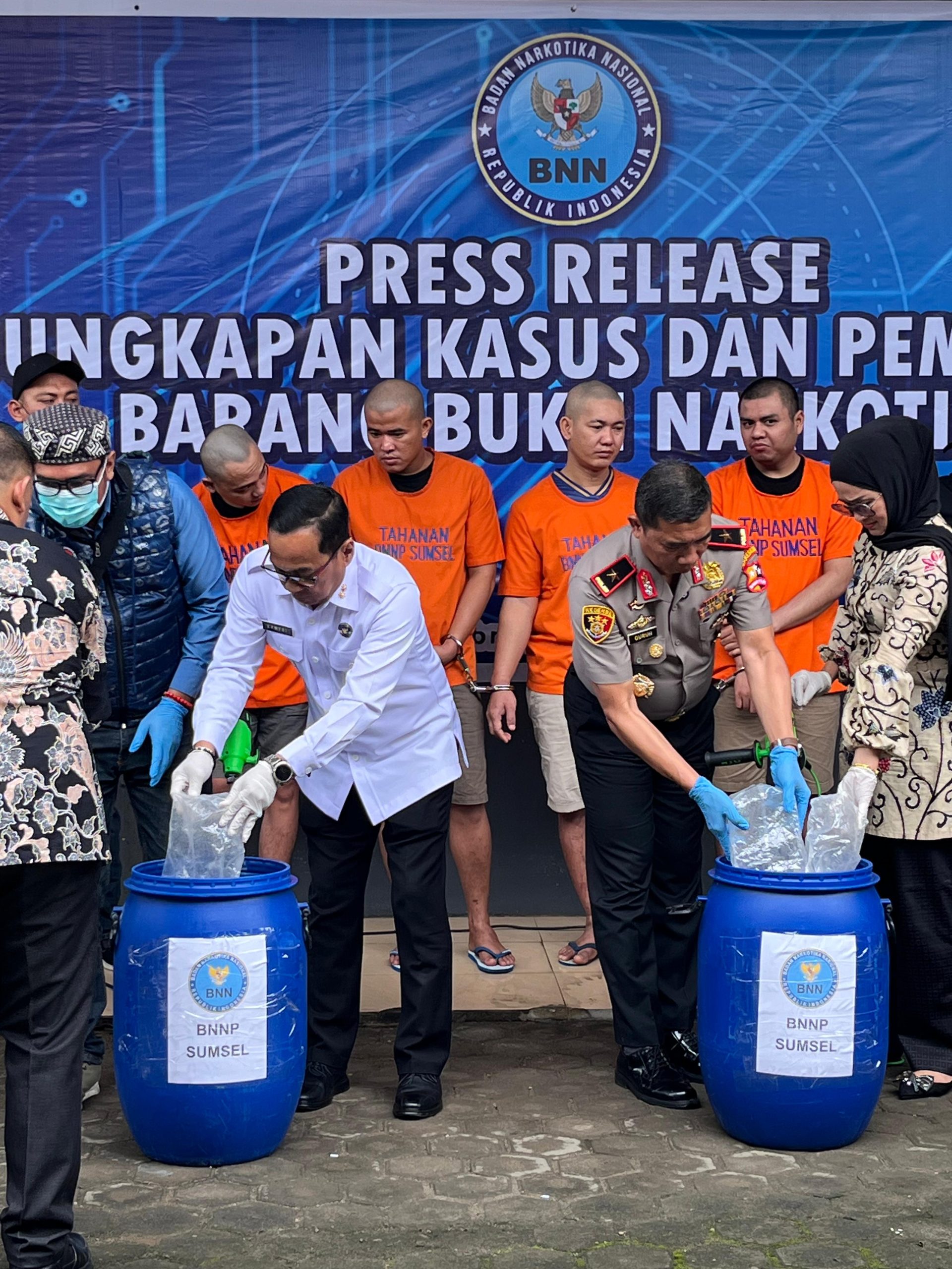 Pemusnahan barang bukti tersebut digeler di halaman kantor BNN Provinsi Sumatera Selatan.