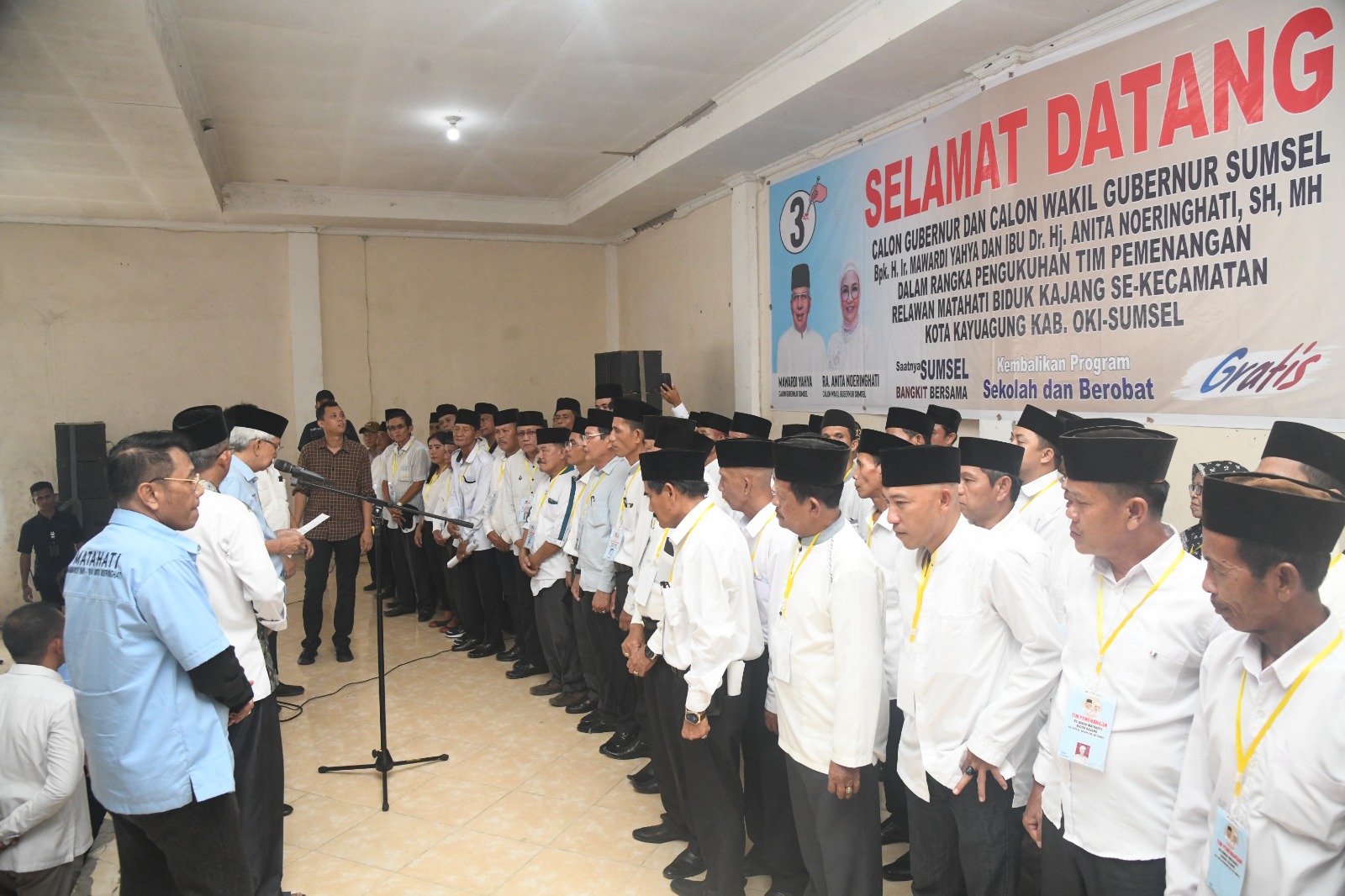 Tak jauh dari lokasi ini, Mawardi Yahya juga mengukuhkan Tim Pemenang Relawan MATAHATI Biduk Kajang Se-Kecamatan Kota Kayuagung, Kabupaten OKI.