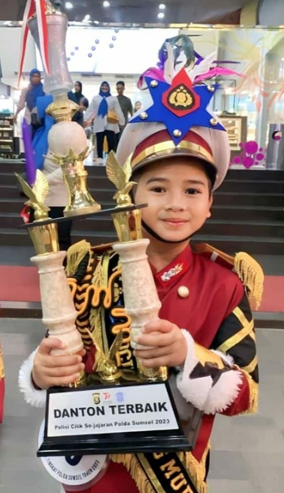 MURATARA,The8news.com-Kren..Arecan (11) putra ke-5(lima) dari pasangan Suhaiman (Alm) dengan Mindawati yang saat ini masih duduk di bangku Kls IV SD.Negeri Batu gajah Kecamatan Rupit Kabupaten Musi Rawas Utara mendapat Danton terbaik Polisi Cilik Se- Sumatera Selatan.